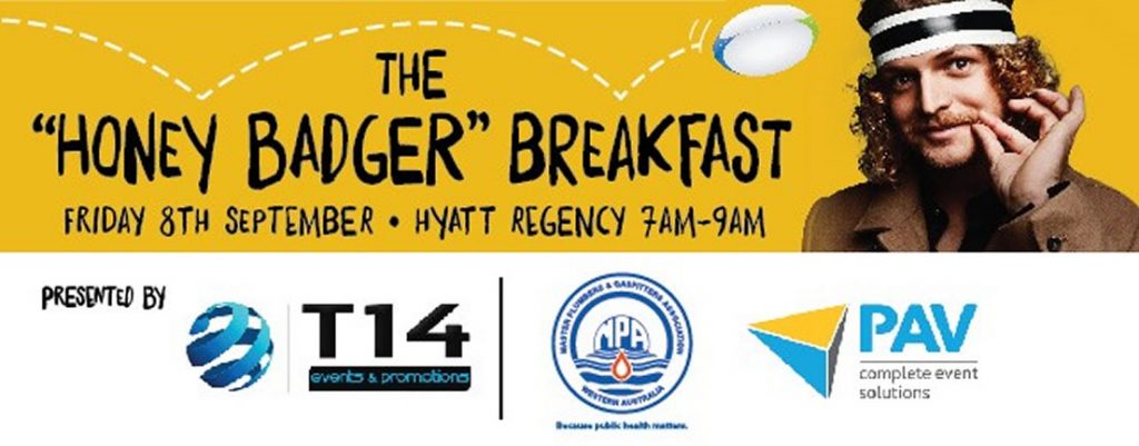 Friday’s breakfast was another successful and extremely amusing event featuring former Western Force & Wallabies player Nick “Honey Badger” Cummings, whose outlook on life, off-centre interviews and cheeky one-liners have made the former rugby union star a cult hero.