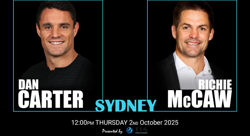 All Black SUPERSTARS Richie McCaw and Dan Carter LIVE on stage for a Lunch Event at Hyatt Regency Sydney. Two days before Game 2 of The 2025 Bledisloe Cup.